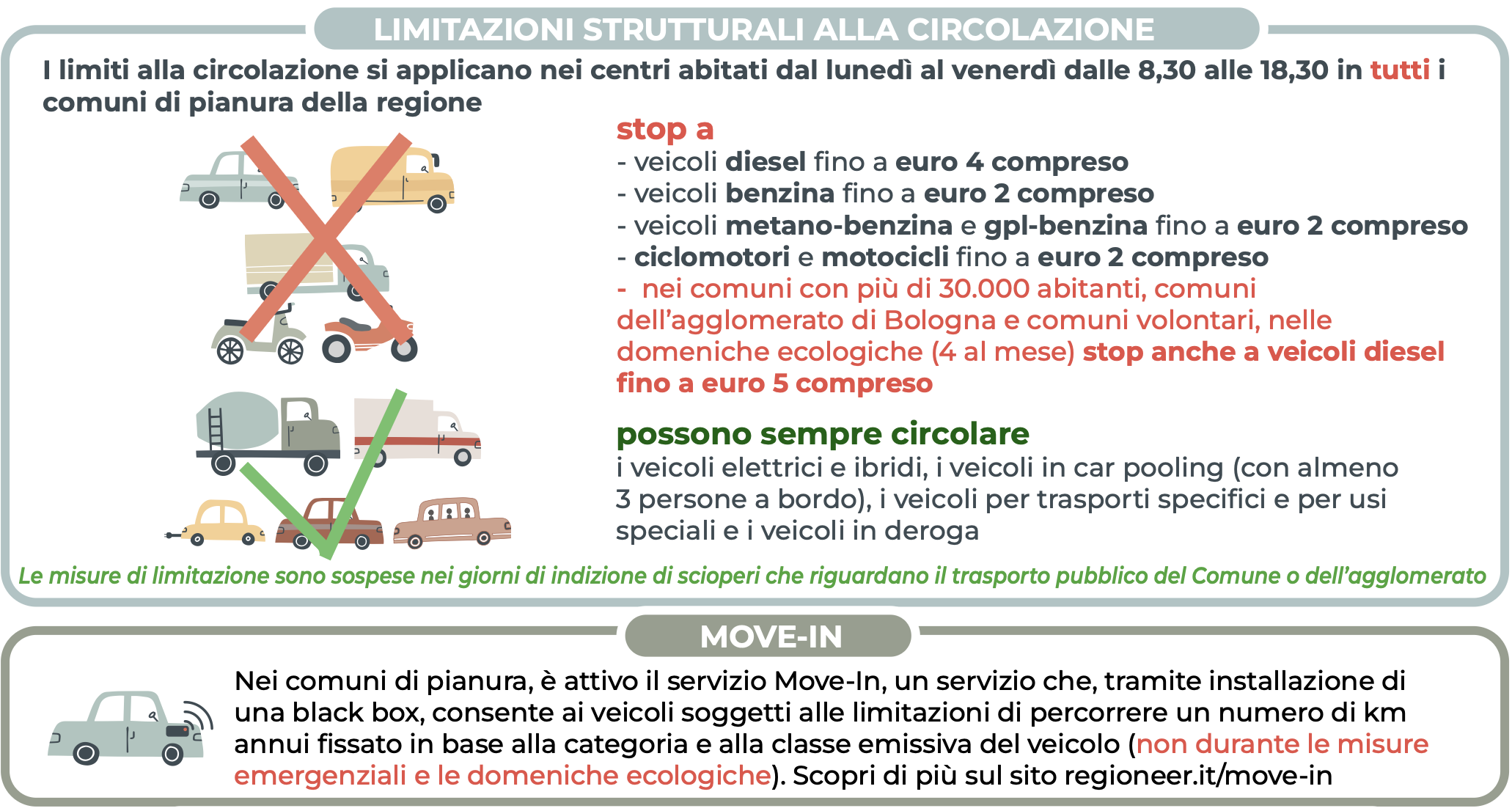 - solo relativamente alle limitazioni strutturali di cui al punto 1, i veicoli che hanno aderito al sistema Move-In, nel rispetto delle caratteristiche del servizio e secondo le modalità operative descritte negli Allegati A, B e C alla DGR n. 1493 del 22/09/2025, come disposto dall’ordinanza sindacale n. 87 del 29/09/2025;