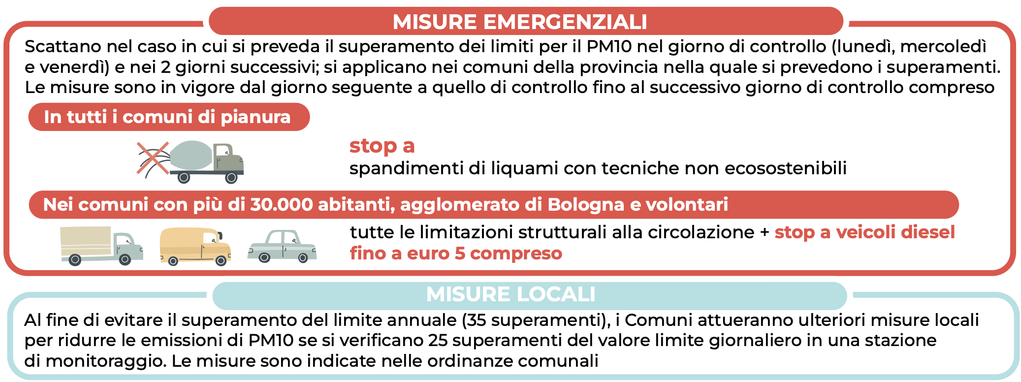 Dell'attivazione di tali misure emergenziali sarà data notizia alla cittadinanza attraverso l’apposito Bollettino (https://www.arpae.it/it/temi-ambientali/aria/liberiamo-laria/bollettino-misure-emergenziali/bollettino-misure-emergenziali), gli organi di informazione e pubblici avvisi.