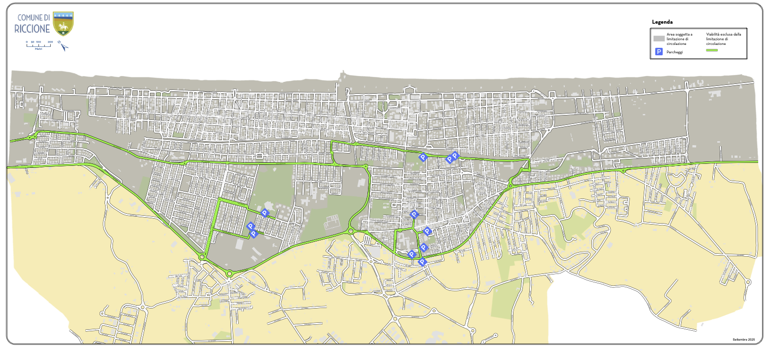 Nel periodo dal 01/10/2025 al 31/03/2026, nelle giornate di domenica (domeniche ecologiche) nella fascia oraria 8.30 – 18.30, il divieto di circolazione nell’area del centro abitato di Riccione, come da planimetria costituente l’allegato 1 che forma parte integrante della presente ordinanza, dei seguenti veicoli: